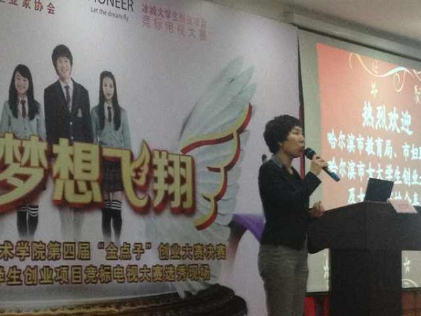 近期,由哈尔滨市妇联、哈尔滨市女大学生创业者联盟共同举办的《让梦想飞翔》首届冰城大学生创业项目竞标电视大赛在哈尔滨商业大学、哈尔滨广厦学院、哈尔滨职业技术学院等高校分别举行了海选现场会。市妇联主席杨杰、副主席杨天悦、发展部部长姜鸿娥、各高校领导及在校数百名大学生参加了海选现场会。
