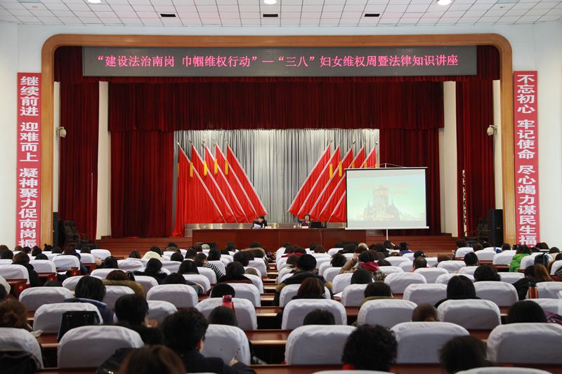 在“三八”国际劳动妇女节108周年到来前夕,《反家庭暴力法》实施2周年之际,3月1日上午,区妇联在区直机关后三楼会场,举办了以“建设法治南岗 巾帼维权行动”为主题的法律知识讲座,开启南岗区“三八”妇女维权周系列活动的序幕。