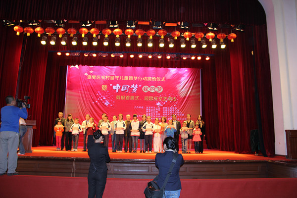 为了促进“中国梦”学习教育活动的深入开展,为了贯彻市教联发【2013】11号文件(关于加强义务教育阶段农村留守儿童关爱和教育工作意见的通知)精神,道里区关工委、区教育局、区妇联、团区委、区委老干部局、区民政局、区文体局和哈报集团读者俱乐部等八个部门联手,在国庆节前共同举行了道里区为农村贫困家庭留守儿童圆梦捐助仪式暨“中国梦”剪报首展式(及十小明星风采录)、迎国庆文艺演出三项活动。