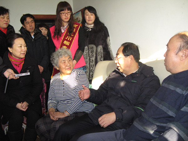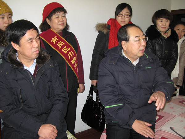 1月16日上午9时,市委常委、统战部长王铁强、市妇联主席杨杰等领导来南岗区走访慰问了空巢老人范奇媛家庭和程凤兰家庭。铁强部长和杨杰主席同老人亲切交谈,详细询问他们的身体、生活方面的情况,嘱咐老人要保重身体,向老人致以节日的问候和祝福,希望妇联组织和巾帼志愿者平日要多关心老人、多为老人解决生活中遇到的实际困难,让老人享受幸福的晚年生活,并为每位老人送去了中国结、春联、围巾、食用油、大米、水果等慰问品。老人连声感谢党和政府对她们家庭照顾,感谢铁强部长和杨杰主席等领导的关怀。南岗区统战部长杨建华、区妇联主席陈琳、荣市街工委书记梁梅陪同走访慰问。