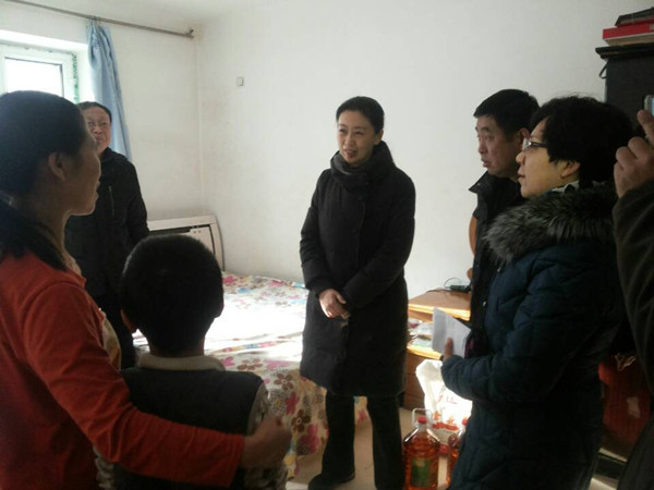 姜晓宁部长走访了红旗街贫困母亲杜春梅,她的孩子在东北农业大学上学,她和爱人都没有工作,靠卖水果生活,三个月前因爱人检查出肺癌晚期,上有年迈的公婆,下有刚上小学的幼子,本人无法外出工作,现正在申请办理城市最低生活保障金。邹书记走访安埠街贫困母亲王丽燕,她们三口之家是低保户,本人身患乳腺癌;爱人下岗,肢体四级残,靠修鞋维生;区妇联又慰问了幸福镇的贫困妇女齐艳茹,她有2个孩子,一个上大学,一个小学。丈夫脑梗后遗症,上房扫雪摔伤,不能劳动。只靠齐艳茹打工维持生活。