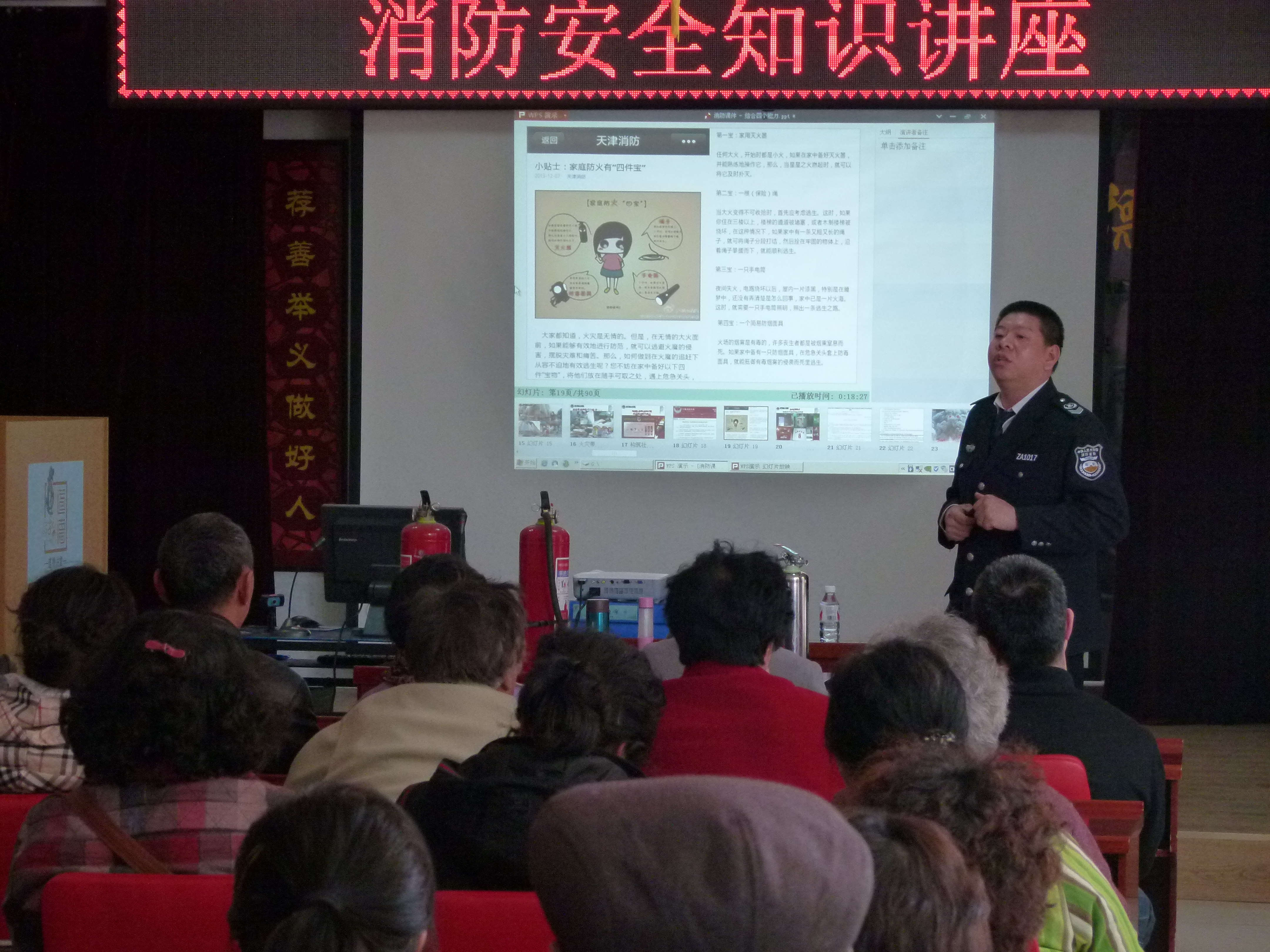 活动中,李教官结合近年来全国各地发生的火灾案例,用幻灯片的形式向居民们传授了发生火灾事故时的四种自救求生方式和防烟罩、灭火器、救援器等消防自救器具的使用方法,并针对煤气、天然气、电视、空调等家用电器着火时应采取的应对方法和注意事项进行了重点讲解。参加讲座的群众均表示受益非浅。