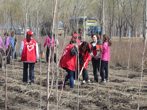 松北区妇联联合团区委、万宝镇党委以及镇农服中心、驻区哈尔滨银行、哈尔滨美加外国语学校等单位共同发起的爱我家园,从你我做起,以传承中华民族植树爱林的优良传统,开展了以“弘扬生态文明、共建绿色家园”为主题的义务植树活动。