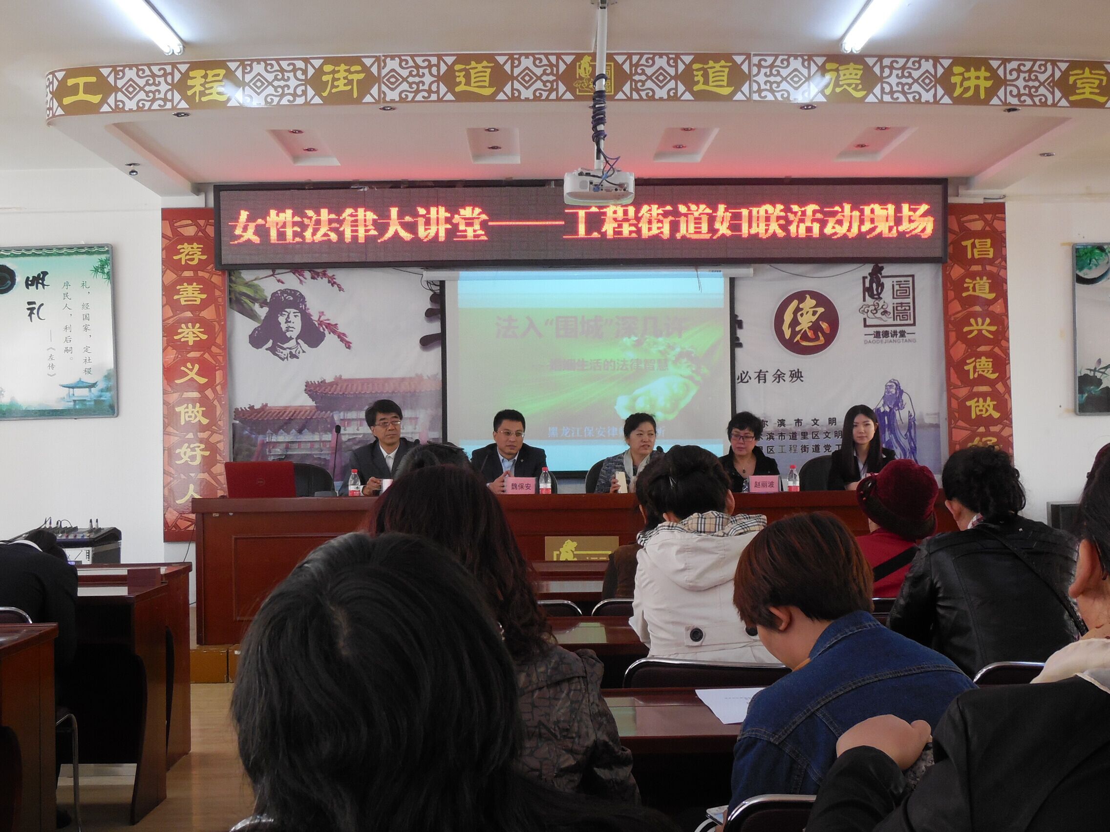 婚姻对于每个女性来讲都是一个很重要的选择过程,面对婚姻问题的抉择,很多女性也是摇摆不定的,为了能让更多的女性在婚姻问题中能更好地把握自己的未来,掌握自己的命运,为了让更多的居民了解新《婚姻法》,根据讲义婚姻法和婚姻法司法解释(三)若干要点解读,近日,道里区工程街道妇联邀请黑龙江保安律师事务所的魏保安、李东岩、孟晓雪三位律师充分运用日常工作积累的经验,分为三个章节细致的讲述了婚前巧送财物,保障美好未来婚姻生活;夫妻共同财产包括的七项内容;走出婚姻的堡垒,别忘拿起法律的护盾等内容。