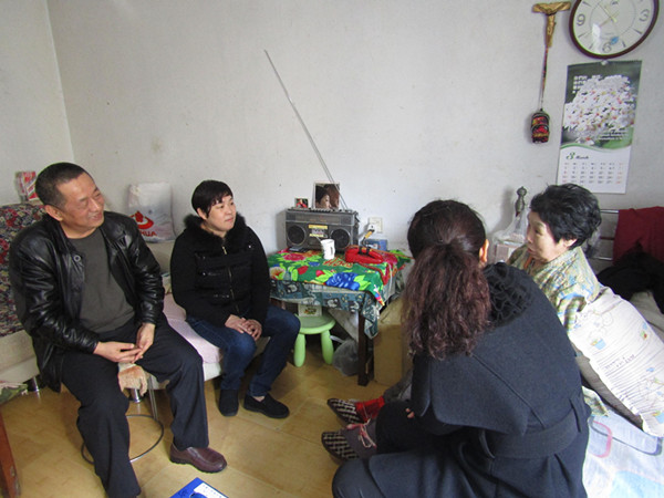 鞠桂兰是一名单亲贫困母亲,身患类风湿,不能行走,生活不能自理,是辖区特服人员;家中还有一个智力残疾的儿子,母子相依为命,只靠政府最低生活保障来维持生活,因此街道妇联及领导对她家的生活非常关心,主任亲切地拉着老人的手,陪她聊天、嘘寒问暖,并帮助解决实际困难,巾帼志愿者还为老人打扫了卫生。
