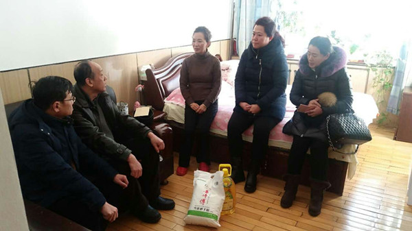 二、 走访慰问贫困家庭活动。在新年前夕,在王兆街领导及妇联陪同香坊区卫生计生局局长王振同志一行到王兆地区贫困姐妹魏淑琴和王扬俩户特扶家庭走访慰问,给她们送去了慰问金、豆油、面粉等慰问品,并向她们表达新年的美好祝福。当特扶家庭王扬接到500元慰问金还有慰问品时,热泪盈眶激动地说:“感谢党,感谢政府对我们的关心!谢谢你们。”