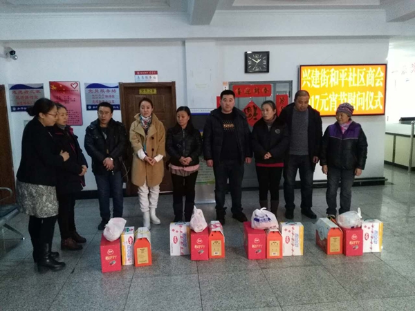 兴建街道和平社区商会妇联,于2016年成立,成立以来商会会员充分发挥妇联组织作用,积极响应区妇联关爱困难群众、做贴心娘家人的倡议,在元宵佳节到来之际,她们为困难家庭送去了元宵、鲜奶、鸡蛋、饮料、豆油等慰问品,同时也为辖区的困难群众送去了节日的祝福。