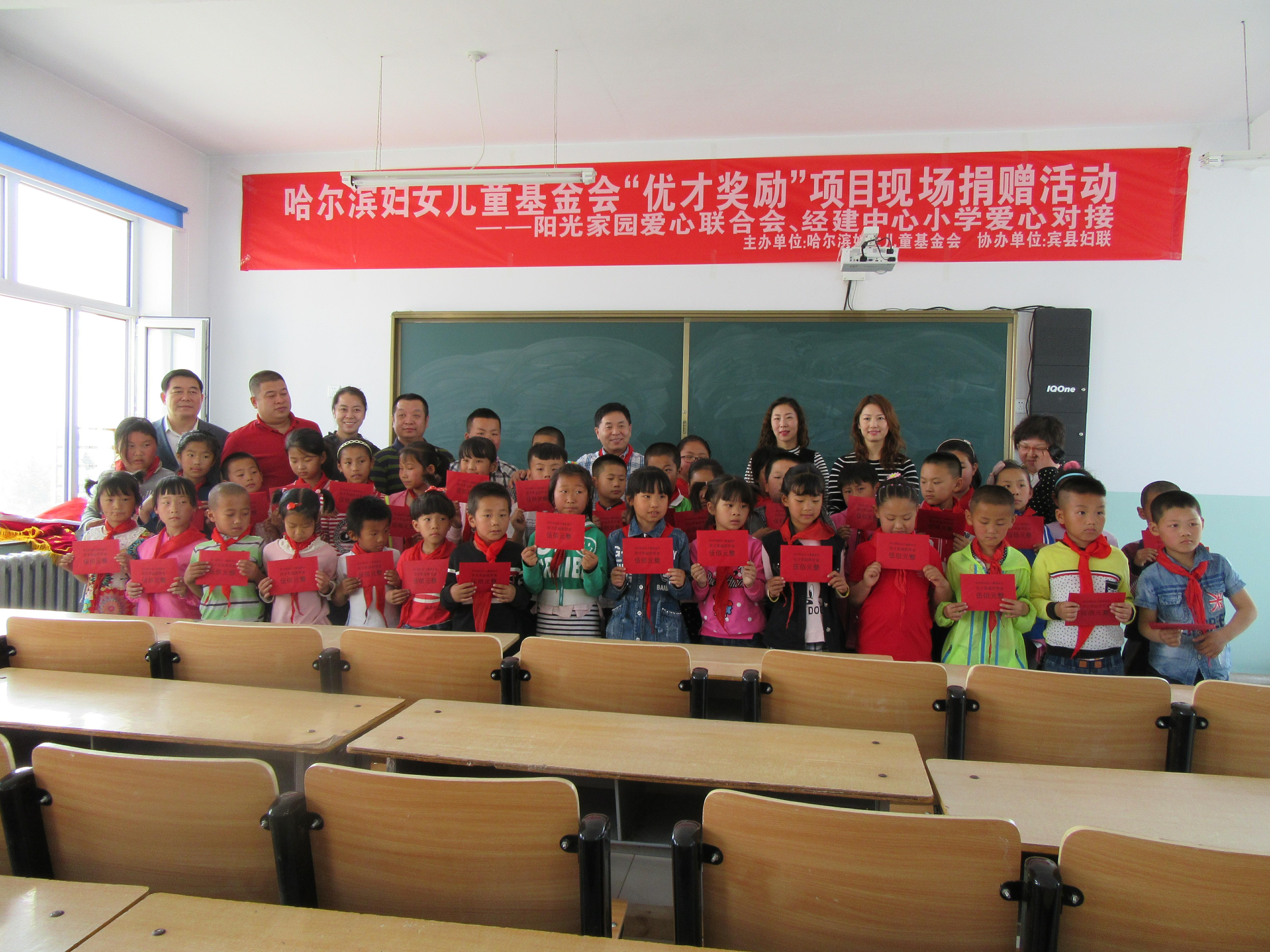5月11日,在这个阳光明媚的日子里,哈尔滨妇女儿童基金会、阳光家园爱心联合会、县妇联在经建中心小学开展“优才奖励”项目现场捐赠活动,为中心小学37名优才学生发放“优才奖励奖学金”,每人500元,共计18500元。哈尔滨妇女儿童基金会田部长、张老师与阳光家园爱心联合会创始人姚洪志及其团队代表参加捐赠活动。