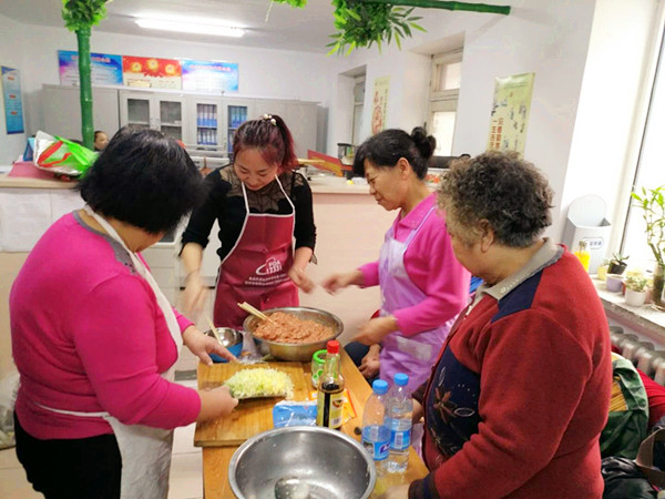为深入学习贯彻党的十九大精神,坚持以习近平新时代中国特色社会主义思想为指导,在新春佳节即将来临之际,为传承我国的传统节日,发扬社区文化,联络邻里感情,增强社区凝聚力,深刻体验传统节日中蕴涵的历史意义,2018年2月7日,新春街道红旗新区社区妇联以“辞旧迎新包饺子,迎祥纳福新气象”为主题,开展小年夜包饺子活动。