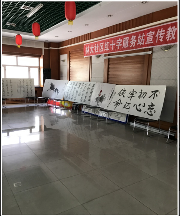 为丰富社区居民文化素养, 2018年4月26日林大社区开展庆“五一”国际劳动节书画展,辖区内书画爱好者积极参与进来,以书画形式展现文化氛围。