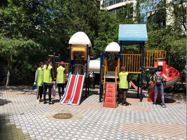 活动中一部分巾帼志愿者主要清扫小区的绿地垃圾,大家一边用手捡垃圾一边把垃圾装进塑料袋内,不怕脏不怕累。其余志愿者用抹布擦拭座椅、健身器材、楼道内的楼梯扶手,清理居民堆放的杂物等。经过两个多小时的辛勤劳动,社区的整体环境被打扫的干净整洁。