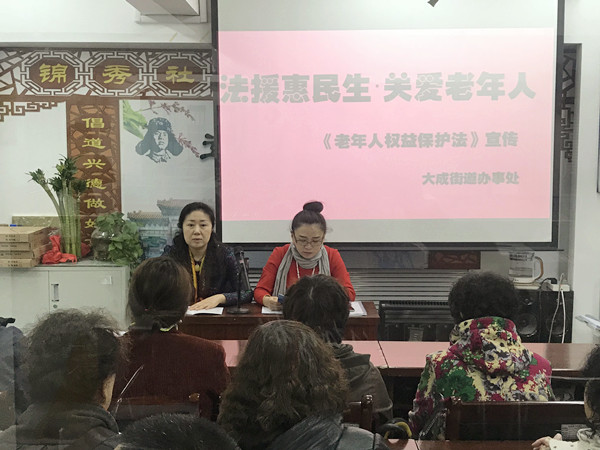 根据《全国老龄工作委员会关于深入开展2018年全国“敬老月”活动的通知》精神,在中国老年节活动月来临之际,大成街道妇联于10月30日开展《老年人权益保护法》宣传活动。