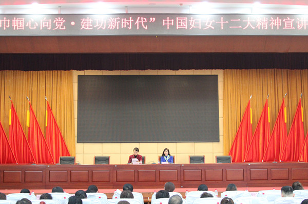 为进一步贯彻中国妇女十二大会议精神,11月21日,香坊区“中国妇女十二大精神”宣讲会在区行政中心大会议室举行。各街镇副书记、妇联主席等各族各界各阶层女性代表400余人参加会议。会议由区妇联主席刘淑琴主持,中国妇女十二大代表,黑龙江交通广播总监兼主持人亓新莉担任主讲。