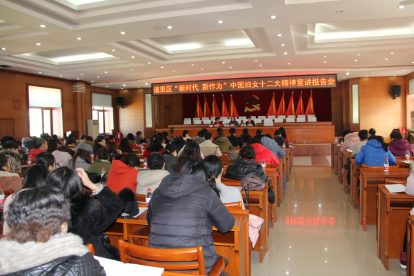 11月28日,道里区召开“新时代、新作为”中国妇女十二大精神宣讲报告会。此次会议得到了区委的高度重视,会议由道里区委常委、宣传部长岳立娟主持。中国妇女十二大代表、全国妇联执委、哈尔滨市妇联党组书记、主席兰峰,中国妇女十二大代表、博能集团董事长、道里区妇联兼职副主席、道里区女企业家协会会长贾秀芳宣讲中国妇女第十二次全国代表大会精神,畅谈参会感受。道里区妇联常、执委、区女企业家协会部分会员、街镇妇联主管领导、全区基层妇联工作者、部分妇女群众等200余人参加了报告会。