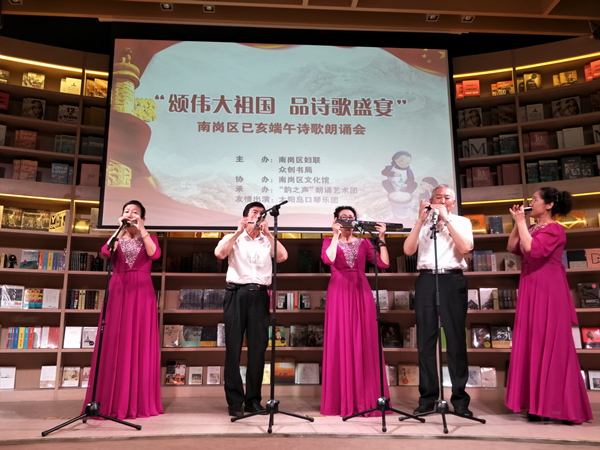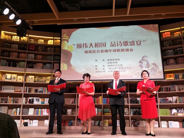 在端午节来临前夕,南岗区妇联于6月5日下午,在众创书局举办了“颂伟大祖国 品诗歌盛宴”端午诗歌朗诵会。区妇联领导,“韵之声”朗诵艺术团、太阳岛口琴乐团的表演者及部分妇女代表70余人参加诗歌朗诵会。