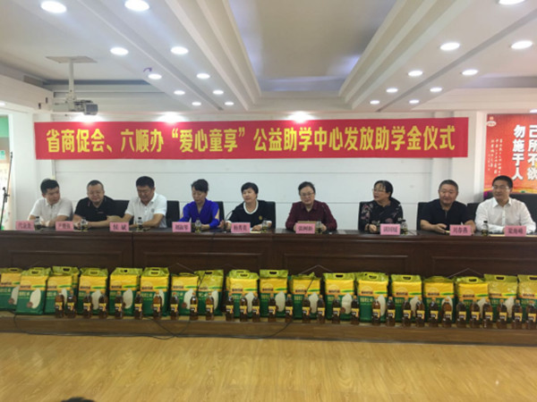 2019年8月29日下午2点,六顺地区“爱心童享”公益助学中心2019年度金秋助学金发放仪式在六顺街道办事处三楼会议室举行,省商促会党委书记张树新、香坊区人大常委会人事和代表联络工作委员会主任满国媛、香坊区妇联主席刘淑琴、香坊区人大代表刘春燕、侯斌、尹德强、代金奎、刘春燕、梁海峰、周风华、六顺街工委书记杨秀英、副书记孙新荣,33名特困儿童和家长、党员志愿者参加活动。省慈善总会现场为特困儿童家庭发放助学金16500元及救助金。