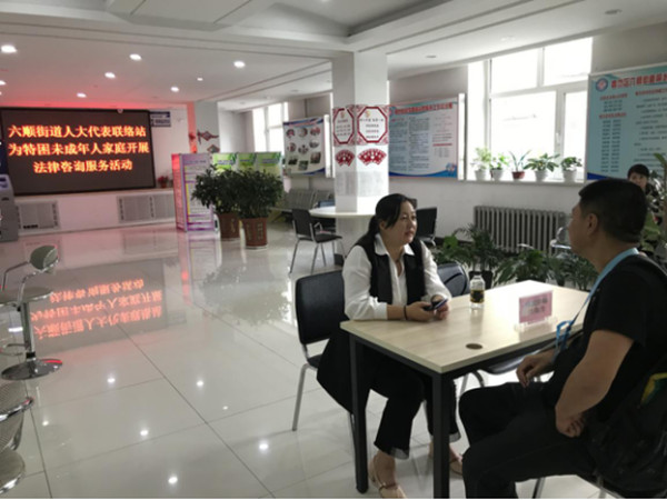 市人大代表马雷律师团队的律师在一楼大厅现场为孩子和家长提供法律咨询服务。